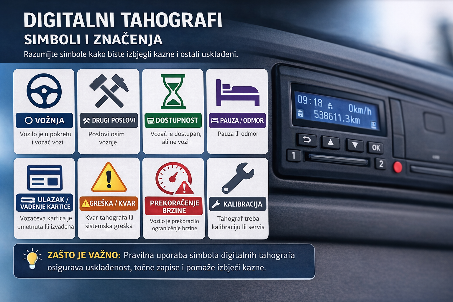 Razumijevanje simbola i značenja digitalnog tahografa ključno je za zakonito poslovanje i učinkovito upravljanje voznim parkom.
