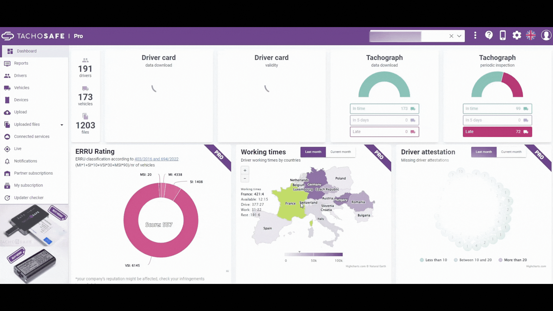 TachoSafe Connect je napredni uređaj za preuzimanje podataka s digitalnog tahografa i vozačke kartice koji osigurava brzo, sigurno i automatizirano upravljanje podacima. Zapravo, svako preuzimanje automatski se sprema na vaš personalizirani račun u oblaku , što vam omogućuje trenutni pristup bilo kada i bilo gdje.